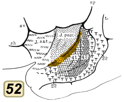 BA 52 kaldes også det parainsulære område. Det er beliggende på oversiden af temporallappen stødende op mod Insula svarende svarer til sulcus limitans inferior, lateralt støder området op til BA 41.