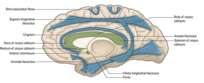 - Cingulum, som har sit forløb inden i gyrus Cinguli