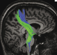 De blå baner er fra den præcentrale region, de grønne fra den postcentrale region